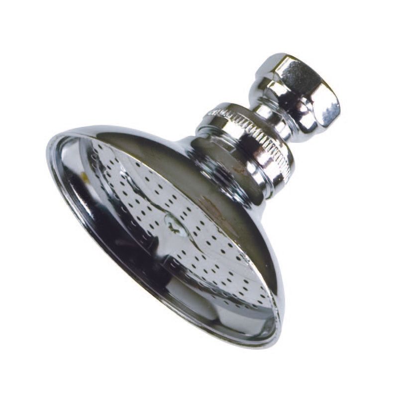 Ball jointed Shower Head with 1/2″ inlet in traditional styling.