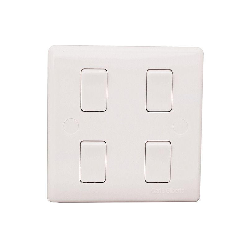 Our 4 Gang – 2 Way Single Plate Switch combines four separate switches on a single faceplate, allowing you to control independent lights from two different locations and is quick and easy to install – essential for areas like staircases, long hallways, or large rooms.