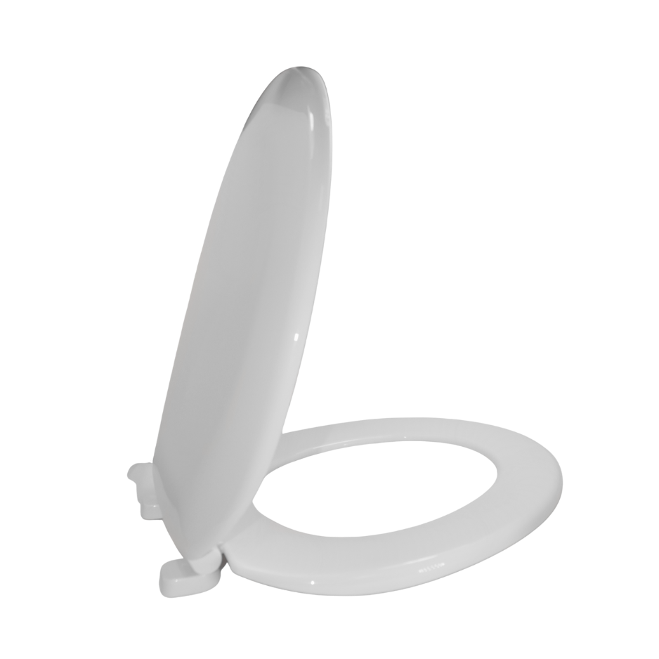 Heavy Duty Toilet Seat in white polypropylene finish with adjustable hinges.